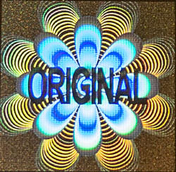 Главными изображениями голограммы является текст “ORIGINAL, содержащий в себе топологию скрытого изображения. Эта топология дает возможность проявить, исключительно, в когерентном свете, скрытое изображение – надпись “ORIGINAL”. Фон голограммы содержит центрально симметричные градиенты сложной формы, имеющие кодирование с периодом и углом наклона дифракционной решетки. Дифракция от текста и фона наблюдается в ортогональных плоскостях, за счет разделения изображений по углу наблюдения. При повороте голограммы или изменении условий освещения на тексте и фоне наблюдаются яркие кинетические эффекты в широком диапазоне углов.
